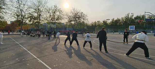 拔河比赛尤为精彩。比赛过程中,同学们紧握绳索,齐心协力,双脚蹬地,身体后倾,每一个动作都凝聚着团队的力量。尤其是在决赛阶段,双方势均力敌,僵持不下,同学们咬紧牙关坚持,展现出了顽强的斗志和坚韧的毅力,场面一度不相上下。最终,经过三轮比赛农机2402班成功获得拔河比赛冠军。