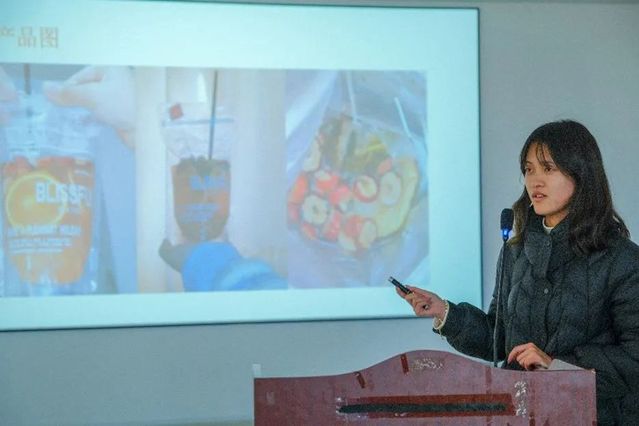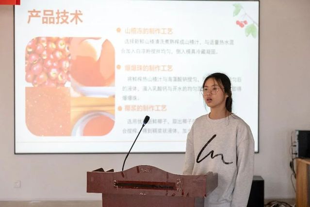 大赛第二阶段分为饮料类产品研发和设计两个类别,经赛前指导初选后共计56支队伍进入现场评审环节。参赛队伍依次通过PPT和实物展示的形式,阐述作品的创意亮点、工艺流程、内容设计和市场分析等。评委针对每组产品的创意及著作流程提出问题和建议。经过专家评审团评议,大赛共评选出饮料类产品研发类作品一等奖1项、二等奖3项、三等奖10项,优秀指导教师3名;设计类一等奖1项、二等奖3项、三等奖8项,优秀指导教师3名。