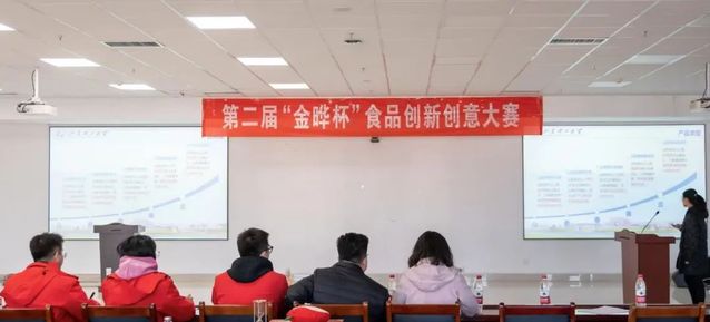 12月15日,第二届“金晔杯”食品创新创意大赛第二阶段决赛在6号实验楼1104会议室举行。山东金晔农法食品有限公司研发总监刘位刚、公司副经理孙霞和公司教师代表出席,仪式由郭衍银教授主持。