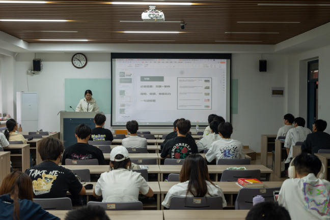 李荣昊则以2024暑期社会实践为例,向同学们分享了社会实践成功经验。他从主题方向的确定到成果与材料总结,生动讲解了优秀社会实践成果的诞生过程。他建议同学们一定要充分结合专业知识、珍惜实践锻炼机会,不断提升自身能力于素质。大会过程中,同学们认真听取学长经验,积极与学长互动。