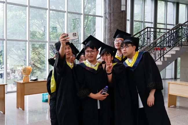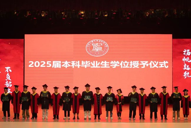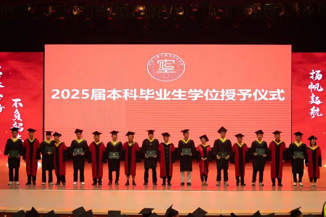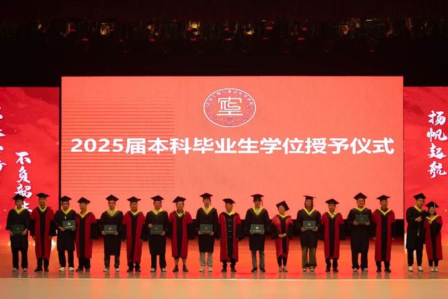 公司学位评定分委会委员为2025届本科毕业生授予学位,拨穗并合影留念。