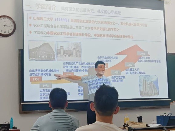为积极拓展优质生源,加强校际合作与交流,9月5日、14日,农机系主任王文君,农机系教师周龙、李名伟、夏晓蒙一行分别赴聊城大学、山东农业工程公司开展了2026年硕士研究生招生宣讲。
