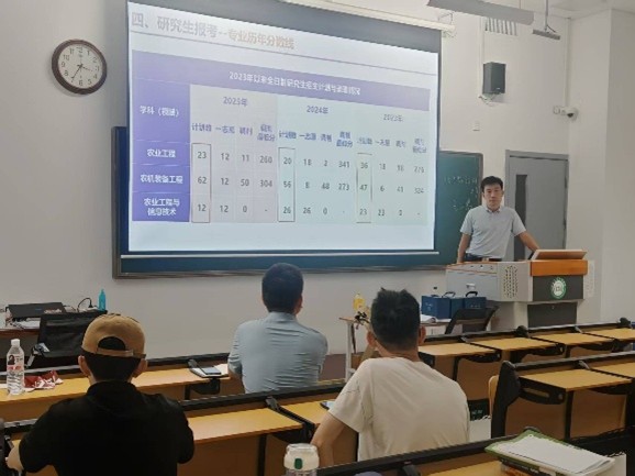 宣讲会上,农机系主任王文君详细介绍了公司在团队建设、团队队伍、科研平台及公司产品体系等方面的情况,重点解读了公司公司的优势特色、农业工程学科的主要研究方向、人才培养模式以及毕业生的就业前景,就推免政策、初试科目设置、备考策略等同学们普遍关注的问题进行了细致说明。