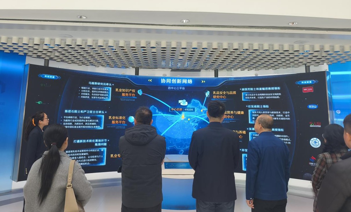 在营养与健康研究中心,工作人员展示针对不同人群营养需求的个性化乳品研发成果,直观呈现了“以消费者需求为导向”的创新理念。在奶牛繁育与养殖技术研究区,中心主导创建的“世界首个蒙古高原家畜种质资源库”以及自主研发的牧草品种,彰显了我国在乳业上游核心资源领域的自主创新实力,也更新了参观团对传统乳业“重加工、轻种养”的固有认知。